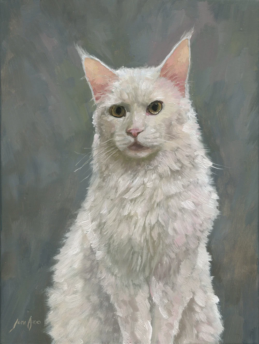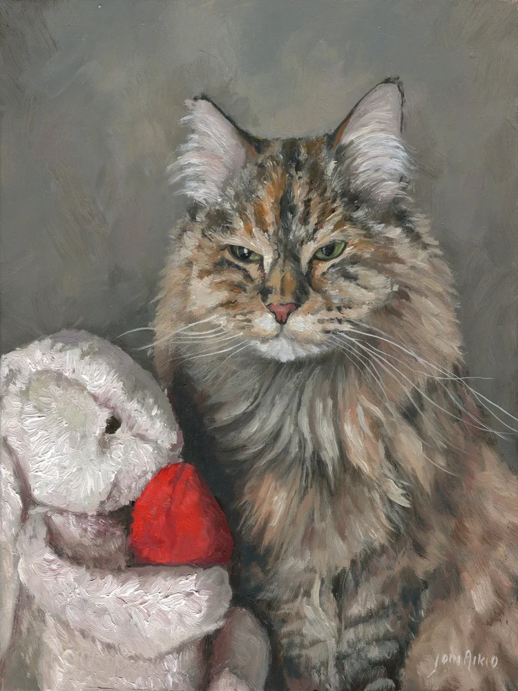 ”Tilaaminen kävi todella näppärästi ja taitelija otti ajatukseni hyvin huomioon. Työ valmistui hyvin aikataulussa ja sain mukavasti väliaikatietoja edistymisestä. Lopullinen työ täytti kaikki odotukseni ja nyt minulla on ihana muisto rakkaasta kissastani ja hänen smaragdisilmistään. Suosittelen todella lämpimästi jos joku harkitsee omasta kissastaan ikuista muistoa.”